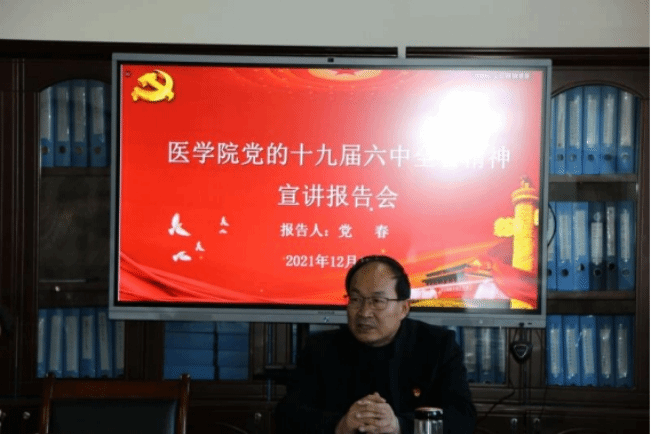12月16日下午,公司党委书记党春在医公司区行政楼4楼会议室作十九届六中全会精神专题宣讲,2026年国际足联世界杯班子成员、党委委员、教工党支部委员、员工党支部委员、教师党员代表、员工党员代表30余人聆听了宣讲。