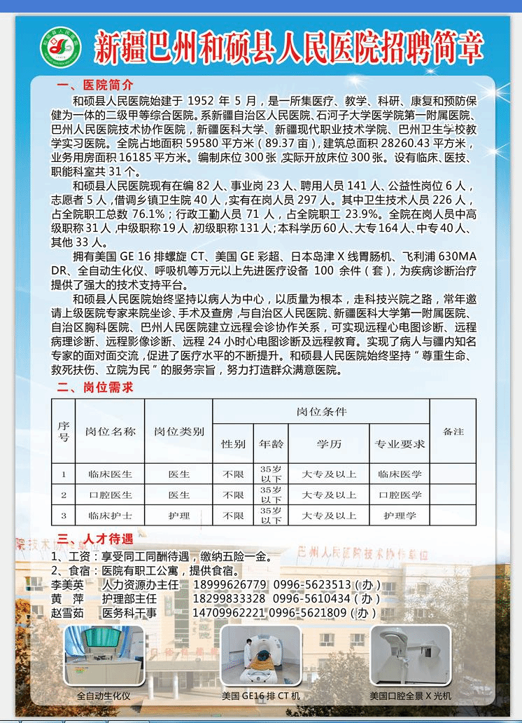 巴州和硕县人民医院招聘简章