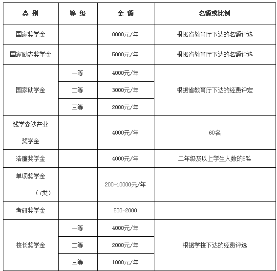 一、奖学金设置