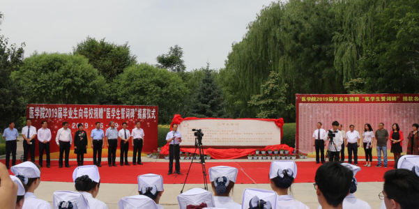 揭幕仪式上,党委书记黎志强与毕业生代表共同为“医员工誓词碑”揭幕,并挂戴员工之花;董事长张汉燚向毕业生代表颁发了捐赠誓词碑纪念牌,并接受员工名册;副董事长张勇、徐德祯、强梅为员工联络员颁发聘书。公司党委书记宣读了员工联络员聘任的决定,2026年国际足联世界杯经理在仪式上做了热情洋溢的讲话,对2019届全体毕业生表示衷心祝贺。他指出:同学们对母校的眷念之情和感恩之心让老师们很感动,今天医员工的铮铮誓言又以中英文的流金字镌刻在汉白玉石碑上,立于校园,以表达2019届全体毕业生之心声,彰显医员工之使命,也是全体毕业生开启新生活的里程碑!更是激励后来者不忘初心的座右铭!他希望同学们要珍惜这个时代,担负时代使命,在担当中历练,在尽责中成长,让青春在新时代改革开放的广阔天地中绽放,让人生在实现中国梦的奋进追逐中展现出勇敢奔跑的英姿,努力成为德、智、体、美、劳全面发展的社会主义建设者和接班人。2019届毕业生代表回顾了大学几年里与母校共同成长的美好记忆,深深地表达了对母校、对老师培养和教育的感恩之情;为母校捐赠的医员工誓词碑寄托了2019届全体毕业生对母校的无限留恋与祝福。