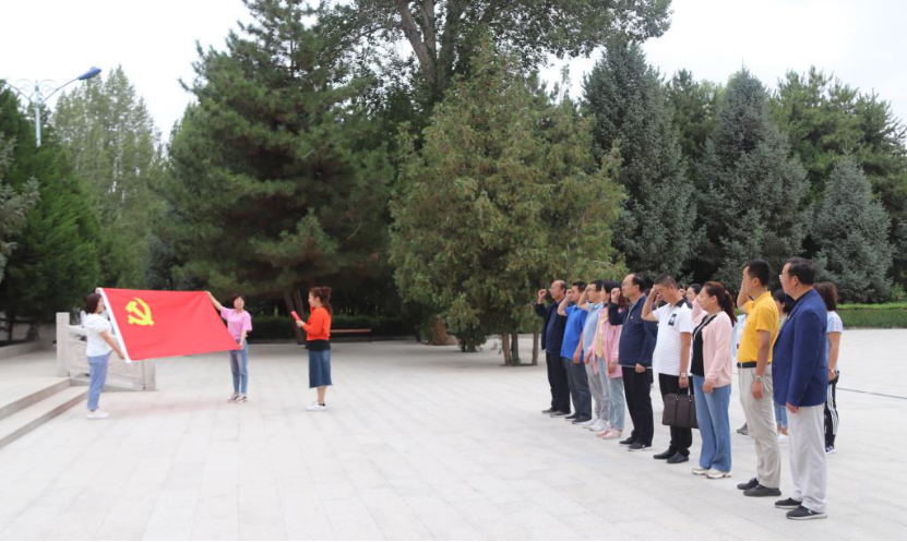 在中国工农红军西路军临泽战役纪念馆庄严肃穆的革命烈士纪念碑前,全体党员向革命先辈敬献花篮,在鲜红的党旗前,重温入党誓词,深切缅怀革命先烈,感悟他们坚定的理想信念、革命精神和优良作风,接受了一次深刻的红色精神洗礼。