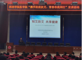 本次活动自11月28日上午起,广泛开展多形式、多层次的“携手防疫抗艾,青春你我同行”宣传,号召大家积极关注艾滋病患者,在向同学们普及防疫抗艾知识的基础上,于12月3日晚邀请张掖市疾控中心何洪涛科长在医公司区学术报告厅举办防疫抗艾专题讲座。何洪涛科长通过讲演PPT向同学们介绍了艾滋病的起源、发展历史、传播途径及社会危害,阐述了艾滋病对个人名誉、经济、家庭造成的伤害,告诫同学们远离毒品,并鼓励同学们宣传艾滋病防治和疫情防控知识。讲座还设置防艾知识抢答环节,进一步加深了员工对艾滋病的认识。