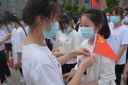 宣誓仪式在庄严的《国际歌》中拉开序幕。全体新党员面向鲜红的党旗庄严宣誓,全体党员一起重温入党誓词。