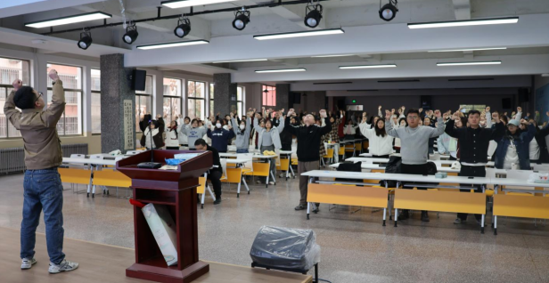 团队成员杨文通博士介绍了颈腰椎病的病理机制、治疗状况以及中西医在处理这一疾病时的理念和方法,并结合丰富的临床案例,讲解了中药内服外用、正骨手法、针灸、推拿按摩、功能锻炼等中医适宜技术在颈腰椎病治疗中的实际应用,同学们纷纷提出问题,积极参与讨论,现场气氛热烈。讲座尾声,杨博士演示了赵继荣教授所创新研发的“颈椎五步操”,同学们跟随杨博士的指导,认真完成每一个动作。