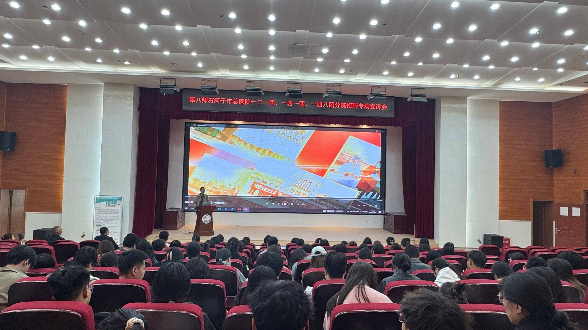 4月21日上午,公司召开第八师石河子市总医院一二一团、一四一团、一四八团分院专场宣讲会,临床医学、口腔医学、中医学、康复治疗学专业全体毕业生参加。