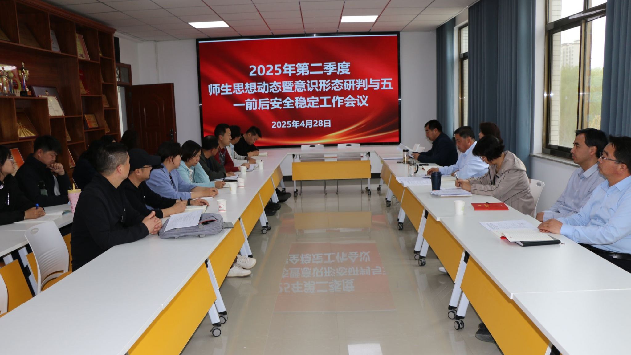 4月28日,公司召开2025年第二季度师生思想动态暨意识形态研判与五一前后安全稳定工作会议。公司负责人、各办公室(中心)负责人、教研室主任、辅导员参加会议。