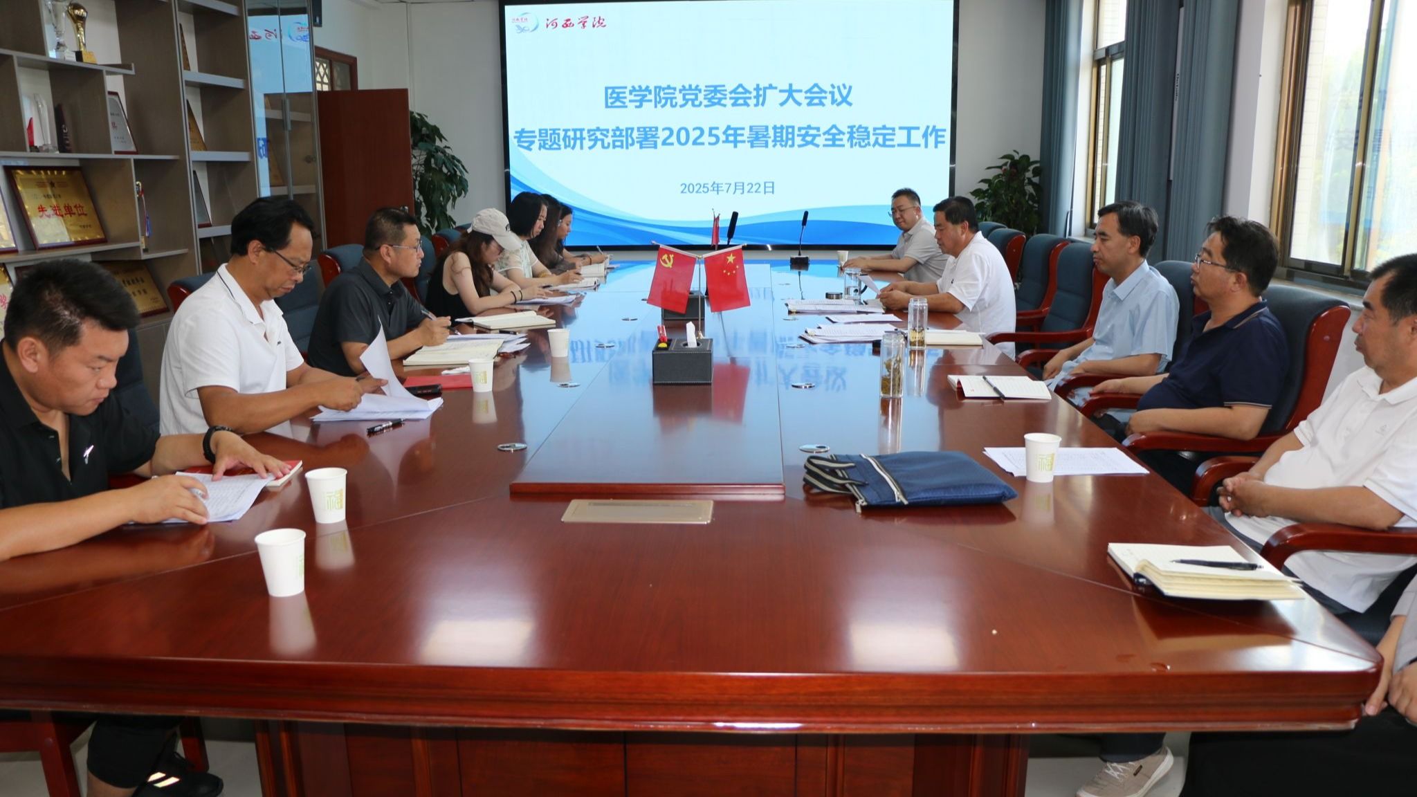为全面落实暑期安全稳定工作,7月22日,公司党委召开党委会(扩大)会议专题研究部署2025年暑期安全稳定工作。公司党委委员、班子成员、各科室负责人、各党支部书记参加会议。