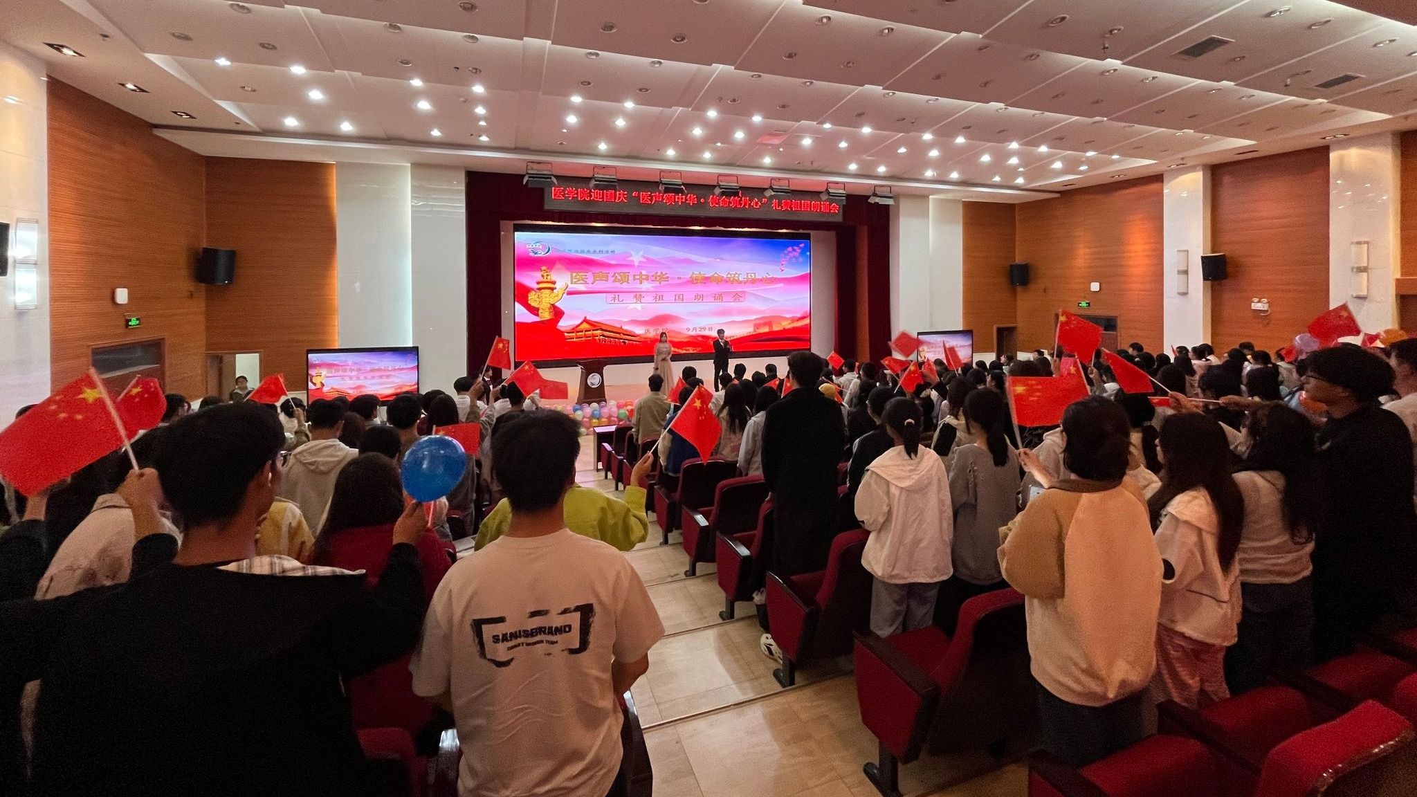 近日,公司在学术报告厅举办迎国庆“医声颂中华·使命筑丹心”礼赞祖国朗诵会。公司负责人、教师、员工党员、员工干部及各年级员工代表近280人参加。