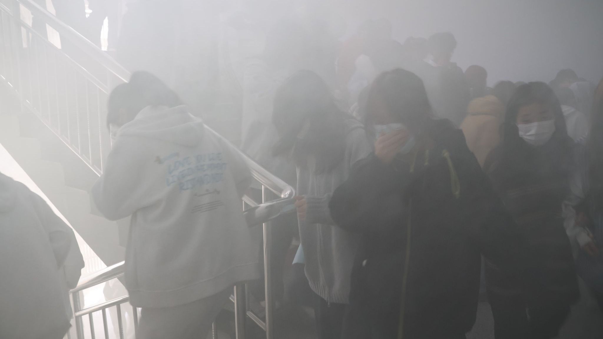下午4时,工作人员发出地震预警警报,教学楼内立即启动应急响应,教师迅速指挥员工采取“伏地、遮挡、手抓牢”的动作就近躲入课桌下方,用手臂护住头部,避免砸伤。随着消防警报的响起,师生迅速切换至火场疏散模式。楼道内浓烟滚滚遮蔽视线,全体人员用毛巾捂住口鼻,弯腰低姿沿预定路线快速撤离至安全区,各班级负责人立即清点人数并上报,整个过程紧张有序,充分检验了师生的应急反应能力。