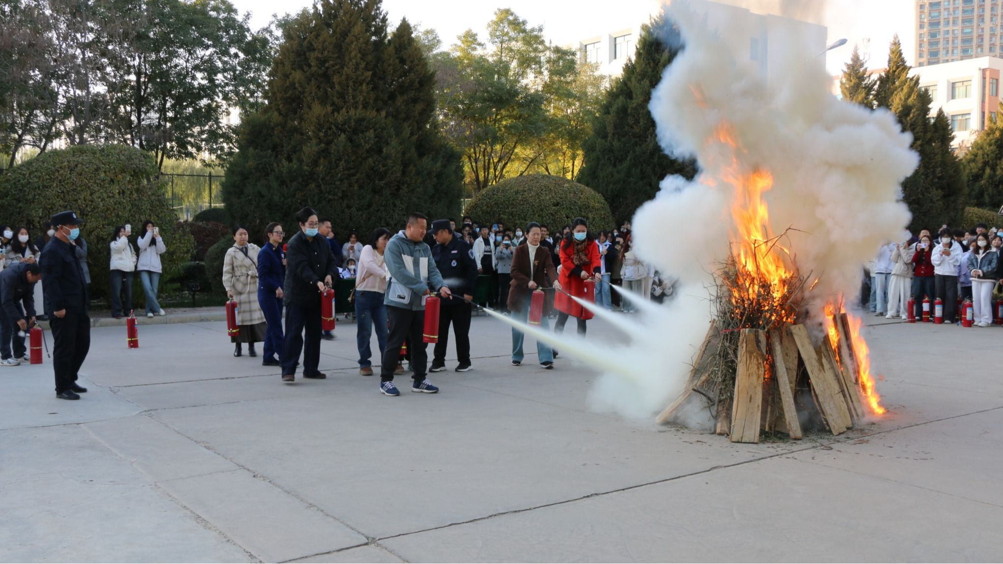 10月26日,公司联合张掖市消防救援支队全媒体中心,组织开展了一场全流程、实战化的地震应急疏散与消防应急综合演练。演练涵盖地震避险、紧急疏散、消防知识培训、灭火器实操及模拟火情处置等环节,全院师生及后勤工作人员共计2000余人参与,成效显著。