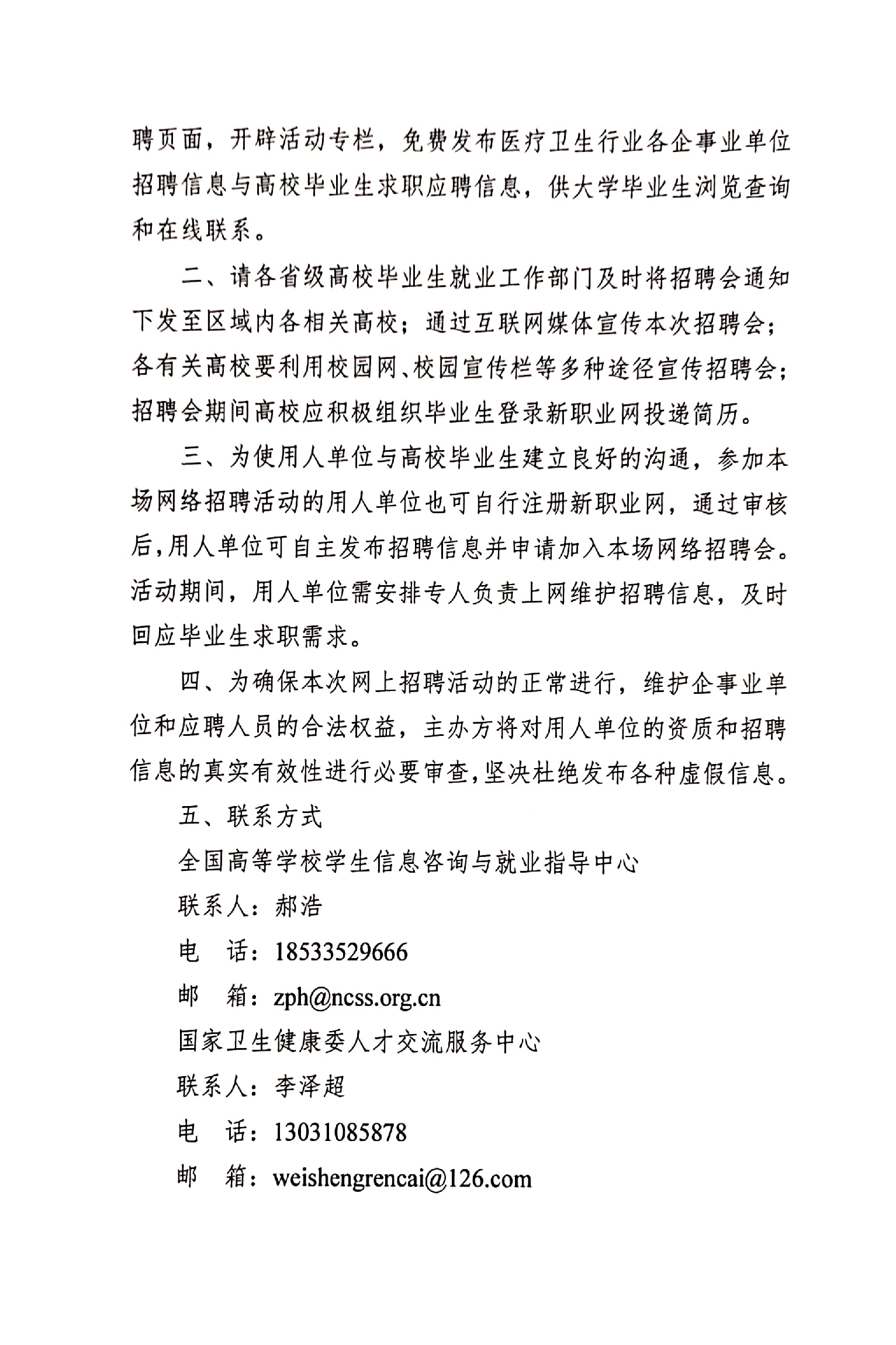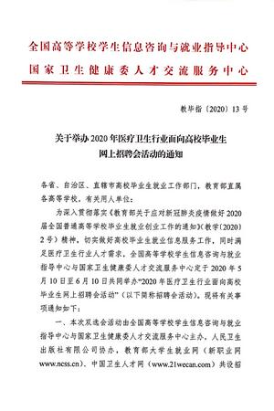 关于举办2020年医疗卫生行业面向高校毕业生网上招聘会活动的通知