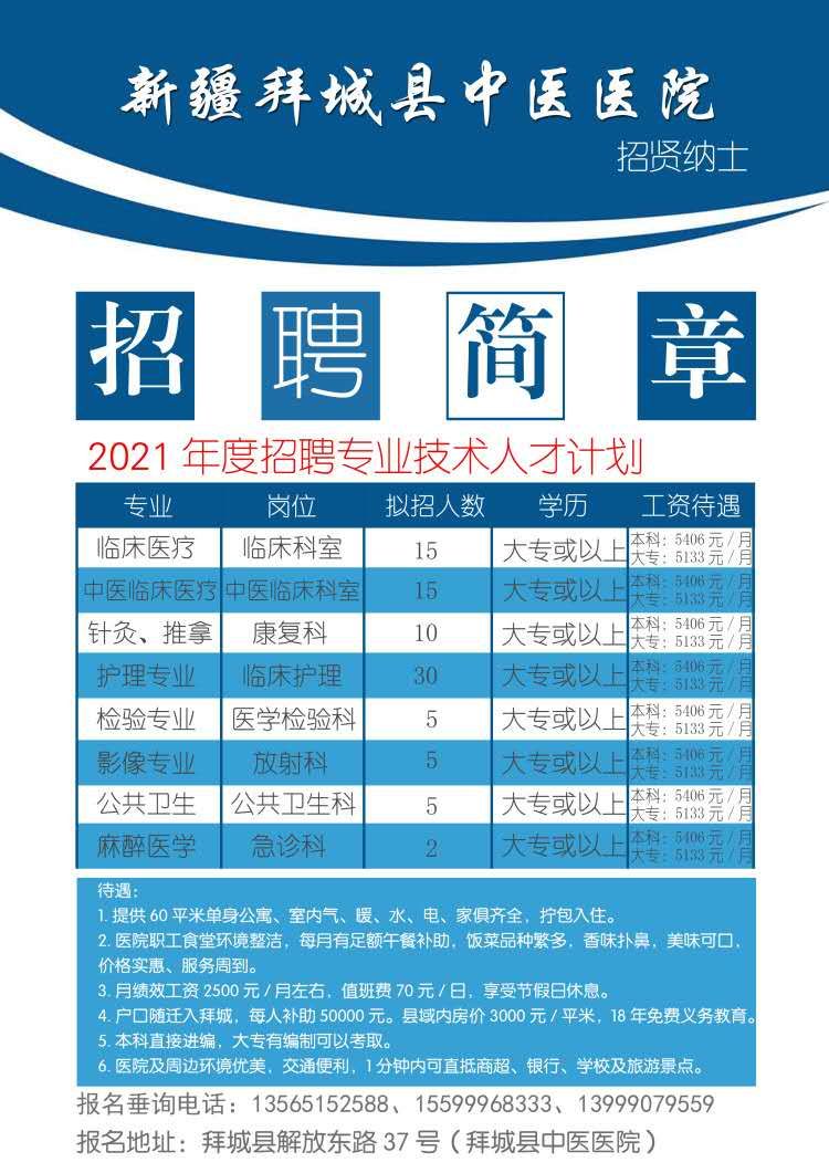 2021年新疆生产建设兵团第六师奇台医院招聘简章
