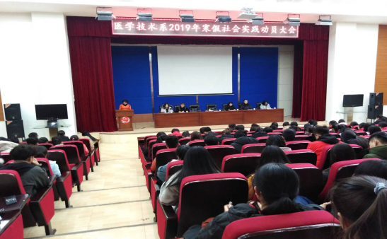会议中,袁主任首先宣读了《关于开展2019年寒假社会实践活动的通知》,并要求班主任利用班会进行广泛宣传。其次,袁主任就医学技术系四个专业分别举例说明各专业如何利用寒假进行为期一周的社会实践。