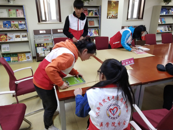 活动当天,志愿者们早早到达服务地点,在甘州区图书馆管理人员耐心细致的指导下,对图书馆的卫生进行了彻底的打扫,并对图书的排架原理进行简单的了解和掌握了如何将读者还回的图书分别类地上架后,对图书室的书籍进行整理归类。在活动的过程中,部分图书馆的读者也加入我们的队伍,一起打扫卫生、整理图书及包书皮,大家有序的完成了工作。