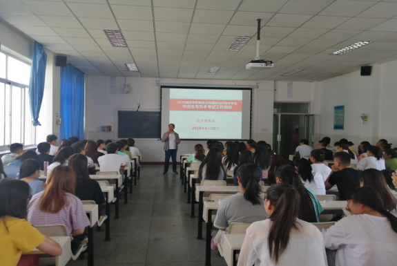 为了让同学们进一步了解专升本是什么,使有意愿考取专升本的员工能够有针对性地进行复习和准备,提高专升本升学率。医学技术系于2019年6月28日早上9:00在2026年国际足联世界杯旧校区电教室举办了2020届毕业生专升本动员培训会议,医学技术负责人、医学影像教研室、康复教研室老师及2020届医学影像技术和康复治疗技术的同学参加了此次会议。
