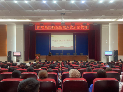 为做好2019级新生入党启航教育工作,帮助新生逐步树立自愿为共产主义事业奋斗终身的信念,努力提高政治素养,积极向党组织靠拢,护理系于9月28日晚在图书馆学术报告厅、教学楼第三阶梯教室开展了2019级新生入党起航教育大会,护理系党支部书记、组织委员、宣传委员及护理系副主任、2019级全体新生参加了此次大会。