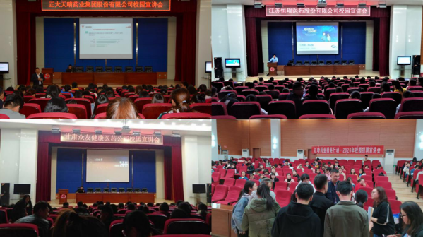 石家庄以岭药业、北京五养堂集团、陇西一方制药有限公司、甘肃众友健康医药公司、江苏恒瑞医药股份有限公司、正大天晴药业集团股份有限公司等企业为员工带来职业生涯精彩的一课。各位宣讲代表从如何选择合适自己内心需要的职业及如何才能赢得更多机会,告诉大家应该从认识自己、分析公司和岗位、设定目标、采取行动四方面进行就业准备;从不同角度对当前就业形势进行了分析,并和同学们分享了这些年来的职场磨砺,艰苦的付出,快速成长与丰富的收获,把自己这一路走来的心路历程、酸甜苦辣与员工们进行了充分的心灵沟通。