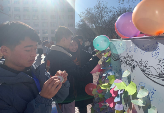 活动开始,以“你最想把自己的秘密告诉谁”的形式打开序幕,心理健康部的同学在不同的地方与陌生同学交流,让同学们在便利贴上写下自己想说的心里话,然后将写满的便利贴贴到展板相应位置。接下来,心理健康部的同学同这些同学进行交流,带动了大家的激情并且活跃了现场气氛,现场交流将活动引向了高潮。最后,心理健康部的同学互相交流了本次活动的感受。本次活动引导公司员工敞开心扉,让她人知道自己内心真实的想法,同时鼓起勇气表达自己的心声,增进彼此之间情感。