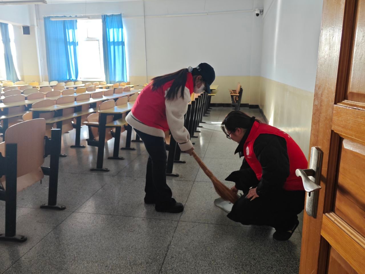 此次志愿清扫之行,如春风拂过教学楼的每寸角落,不仅扫去尘埃,让卫生环境焕然一新。他们的每一次弯腰、每一次擦拭,皆为“奉献、友爱、互助、进步”这一志愿者精神写下生动注脚,化作一片片砖石,为校园文明的宏伟大厦添砖加瓦。